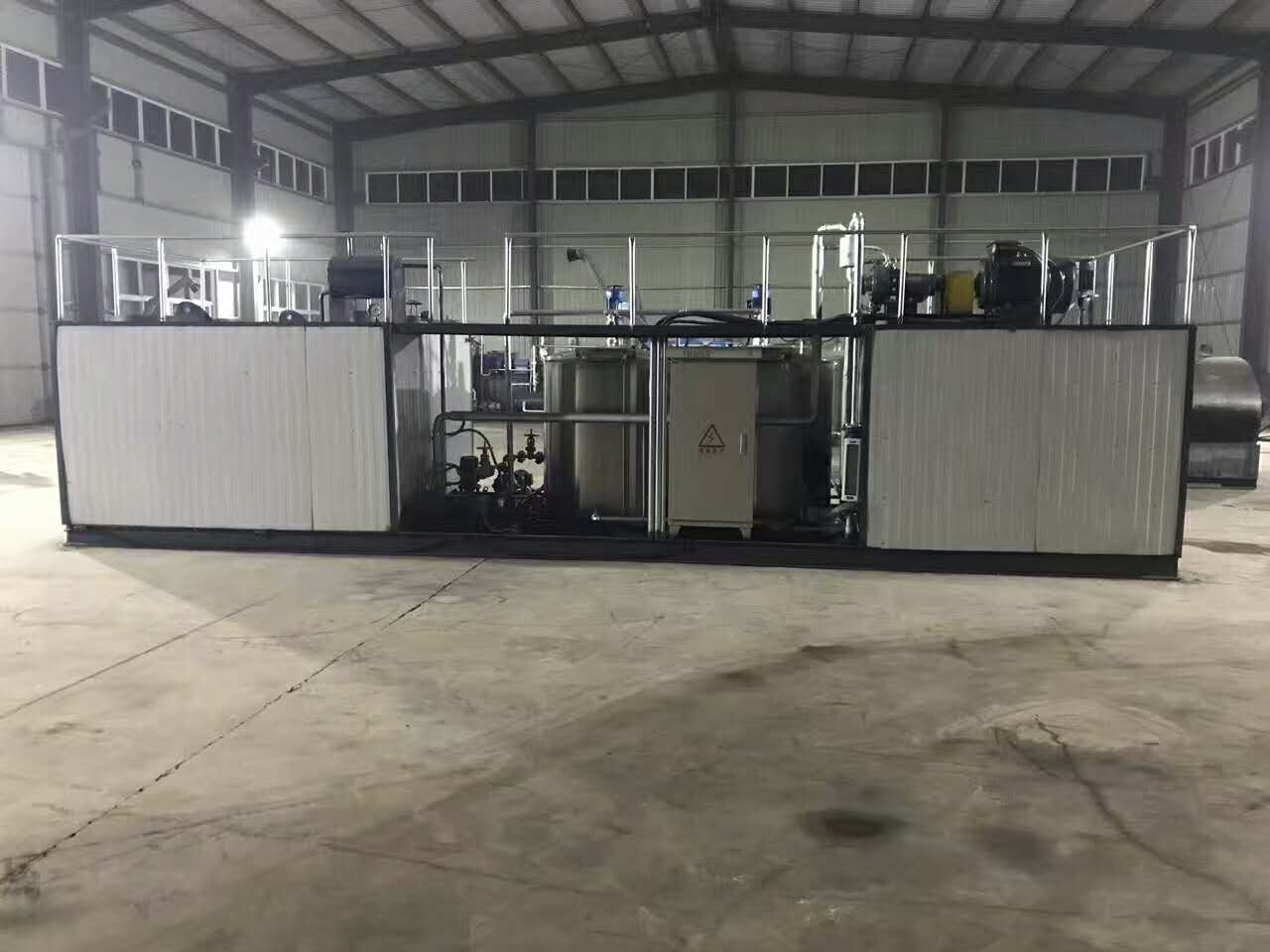 乳化瀝青機組由瀝青過渡罐、乳化液摻配罐、成品罐、調速瀝青泵、調速乳液泵、乳化主機、成品輸送泵、電控柜、大底板、管道、閥門等組成。