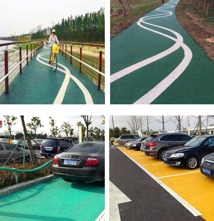 彩色瀝青是一種新型環(huán)保的筑路材料,再與各種顏色石料、色料和添加劑等材料拌合,通過(guò)攤鋪、碾壓便形成具有一定路用性能的混泥土路面;彩色瀝青路面給城市道路帶來(lái)很多的便利。多用于下面幾個(gè)地方